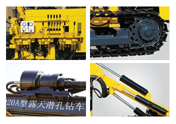 KG920A 型露天潛孔鉆車在KY125型鉆車的基礎上,對氣路系統、液壓系統、鉆臂部件、行走部件等進行優化升級,爬坡能力更強,鉆孔角度更合理,回轉轉速和推進速度更快,馬達使用壽命更長,可靠性更好。