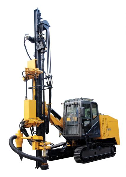 KY9S型露天潛孔鉆車的行走、推進、回轉及角度調整等動作均采用液壓驅動,動力強勁;沖擊采用高風壓氣動沖擊,鑿巖效率高;配有液壓干式集塵器收集粉塵,減少對環境的污染。鉆車還配有直線式接缷桿系統、浮動接頭和自動噴油裝置(保護鉆桿螺紋)、空調駕駛室(提供舒適的工作環境)、自動控制防卡釬系統(減少卡鉆機率)等模塊。鉆車具有自動化程度高、節能高效、舒適環保、操作方便、行駛安全等特點。