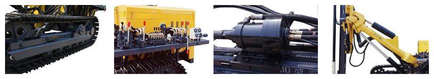 ·經過優化設計的變幅機構及圓形鉆臂,結構新穎,調整方便,使鉆孔覆蓋范圍大大提高,并可鉆鑿低位水平孔。